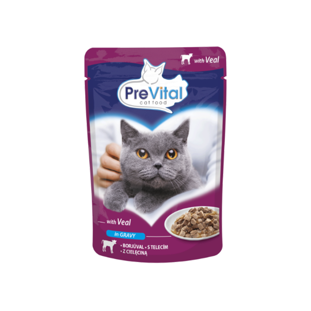 Plic PreVital pentru pisici adulte Cu vițel în sos 100 g