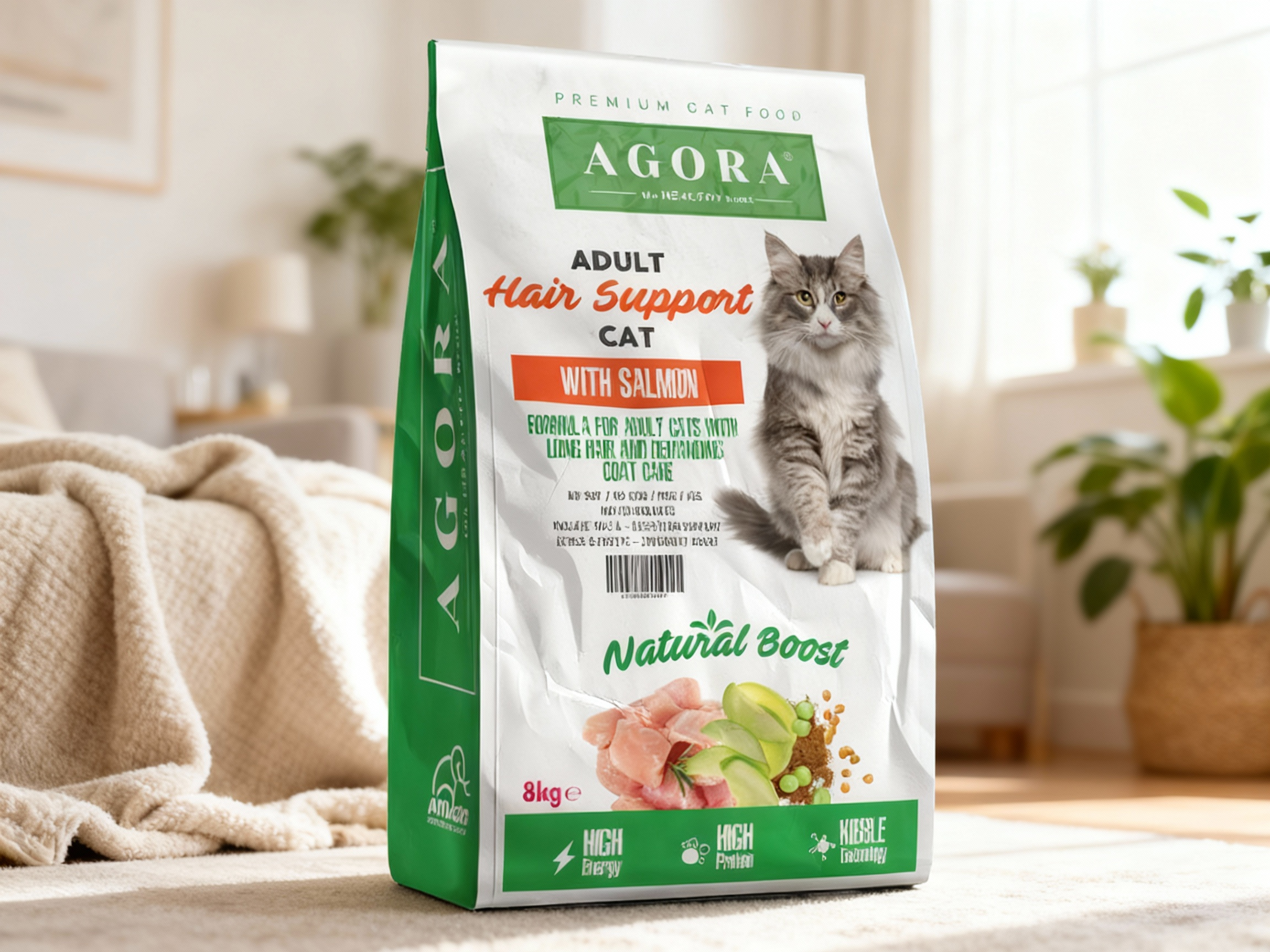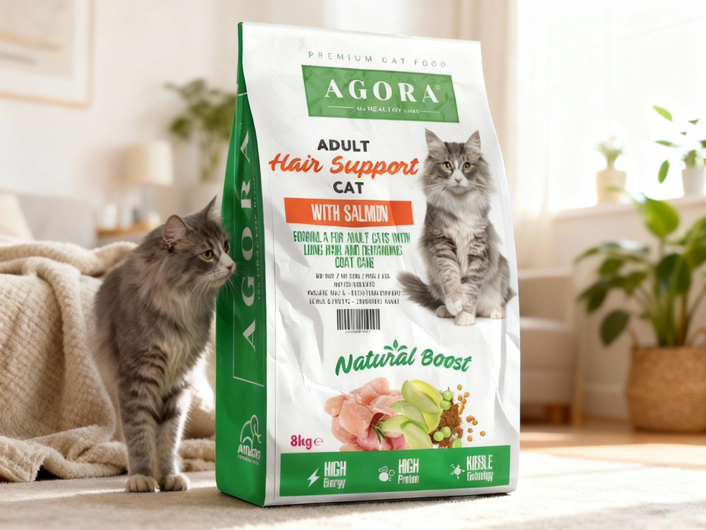 Agora CAT Adult Hair Support este concepută special pentru pisicile adulte care au nevoie de suport anti-hairball. Formula conține lignoceluloză pentru reducerea formării ghemotoacelor, proteine de somon și ulei de somon pentru aport optim de omega-3, plus un mix de plante și fructe pentru imunitate. Cu ingrediente naturale și fără soia, OMG sau coloranți, această hrană asigură digestie excelentă și o blană sănătoasă și strălucitoare.